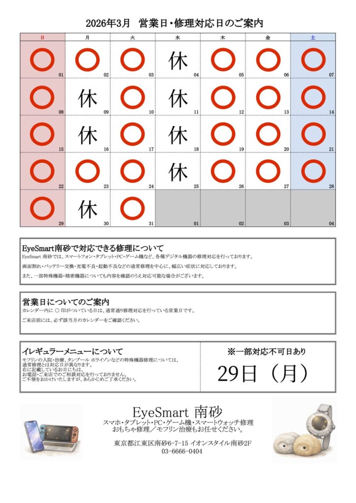 南砂店 定休日のお知らせ